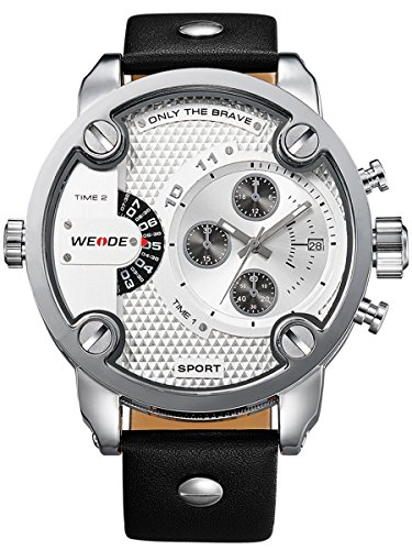 Alienwork offer Alienwork DualTime Quartz Watch Multi Time Zones Wristwatch XXL Oversized Leather white black OS.WH-3301-2. This awesome product currently limited units, you can buy it now for £67.59 £35.55, You save £32.04